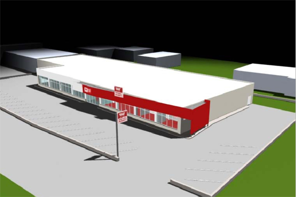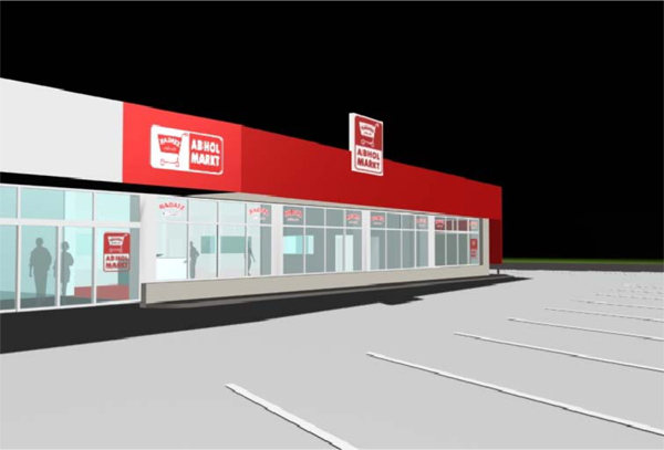 Die ehemalige Verkaufsfläche eines Fahrzeugfachhandels wird zu einem Verkaufslokal der Fa. Radatz umgestaltet.