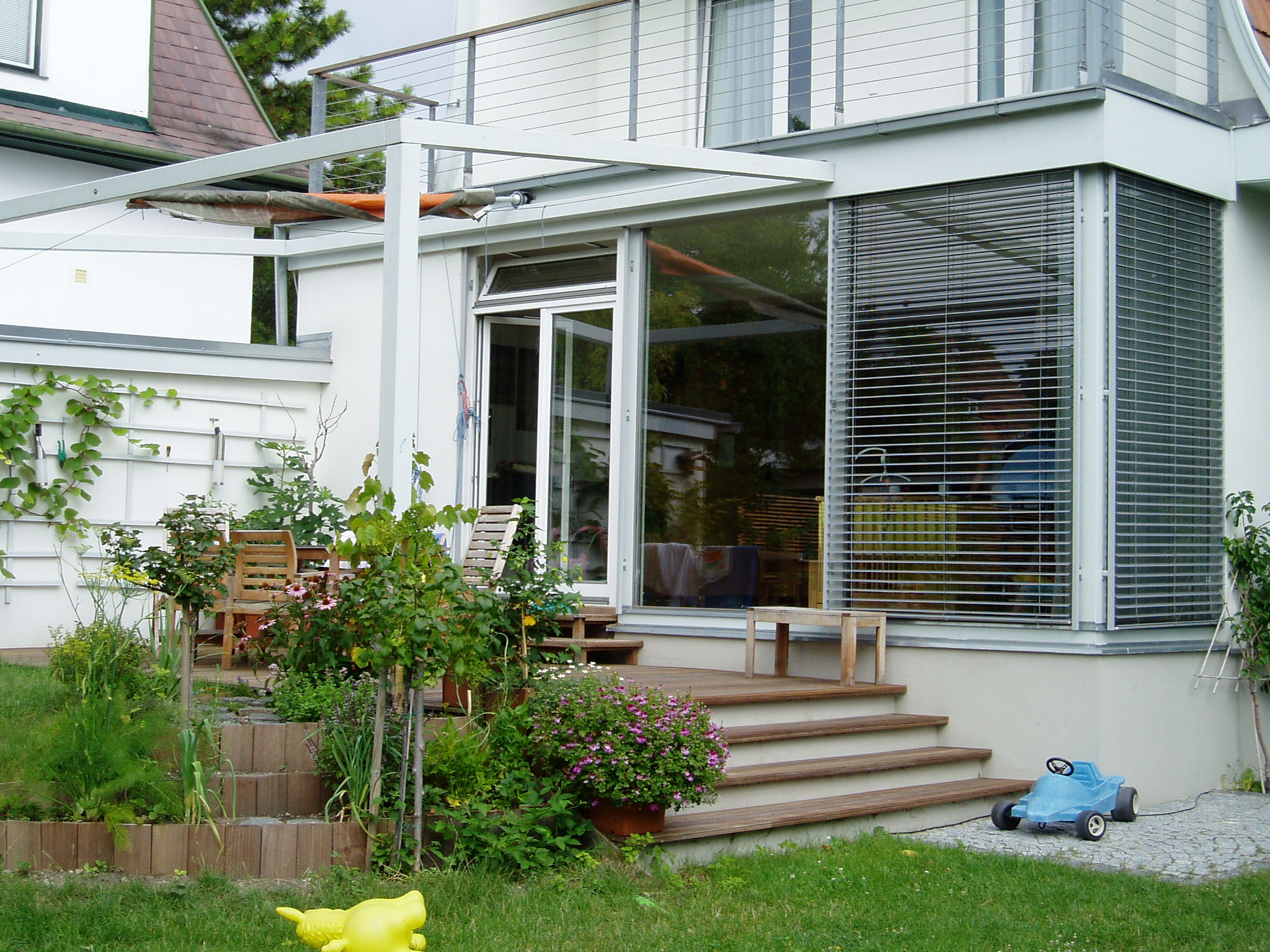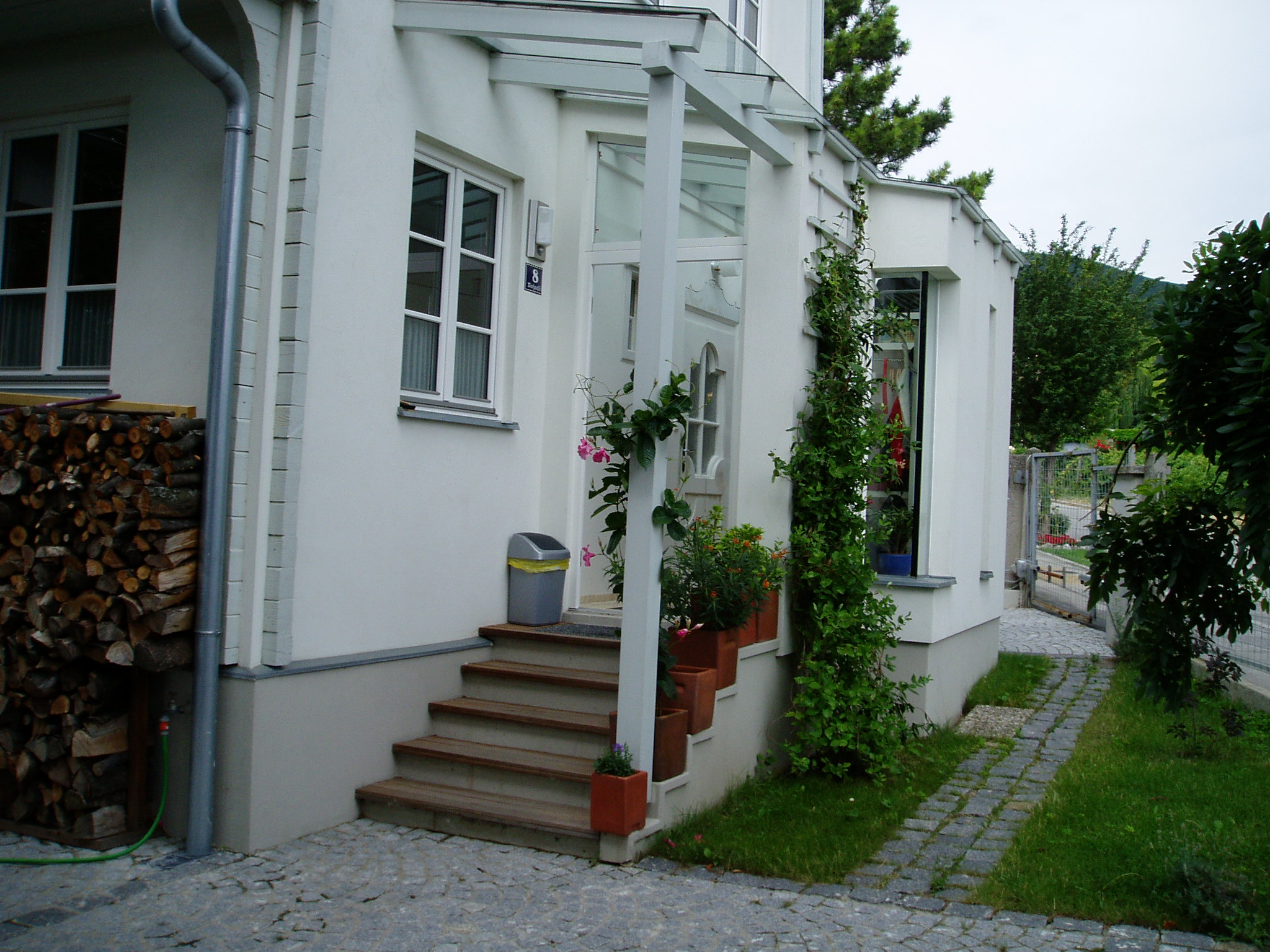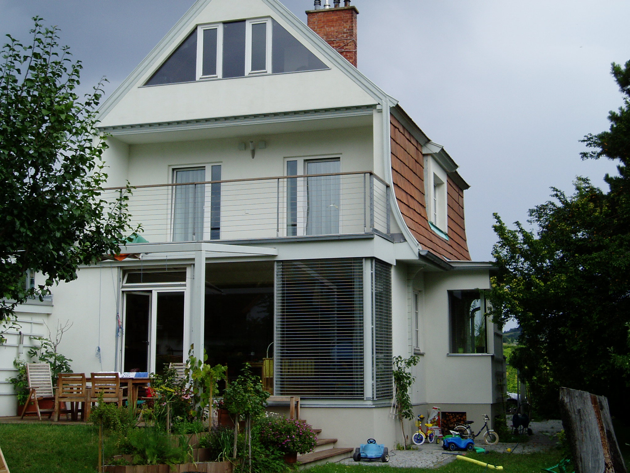 Ein Holzhaus aus den 30er Jahren des 20. Jh. in Gumpoldskirchen, im Süden Wiens sollte saniert und erweitert werden. Die Wände bestehen aus lediglich 9 cm dickem Holz in Blockverband. Wir sanieren mit dampfdurchlässigem Material und ermöglichen eine zeitgemässe Wärmedämmung. Das Haus wird in Richtung Garten großzügig erweitert und erhält einen glasgedeckten Windfang.